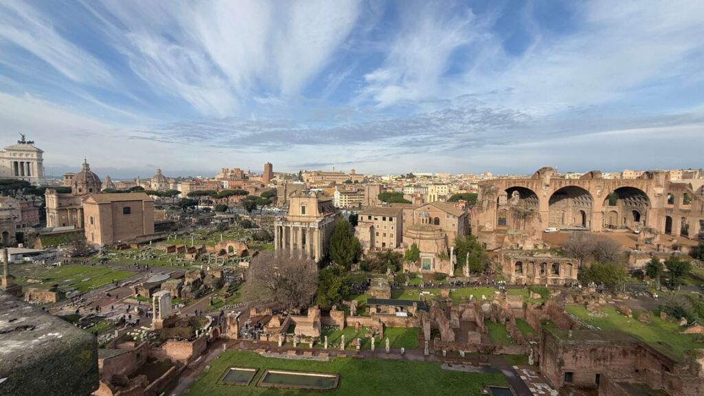 O Fórum Romano era o centro político, religioso e comercial da Roma Antiga e o local onde aconteciam discursos, julgamentos, cerimônias e o dia a dia dos cidadãos, cercado por templos, basílicas e arcos triunfais. Já o Palatino, uma das sete colinas de Roma, é considerado o berço da cidade e ficou conhecido por abrigar os palácios dos imperadores, oferecendo uma vista privilegiada do Fórum e do Coliseu. É tudo o mesmo complexo e aqui temos uma ideia de como funcionava a Roma Antiga, com vários monumentos e muita história. Senti por não termos contratado um guia, porque a maior parte das coisas só passávamos sem saber muito o que significava, então será obrigatório para mim em uma próxima visita. Caso você queira contratar para a sua visita: Visita guiada ao Coliseu e visita guiada ao Coliseu e Fórum Palatino (com guias em Português).